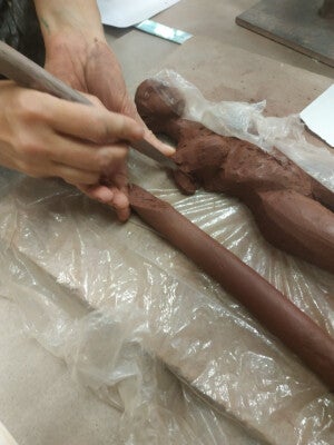 © photo prise de Monique Gallo - travail de modelage d'un corps. Grès rouge d'Espagne